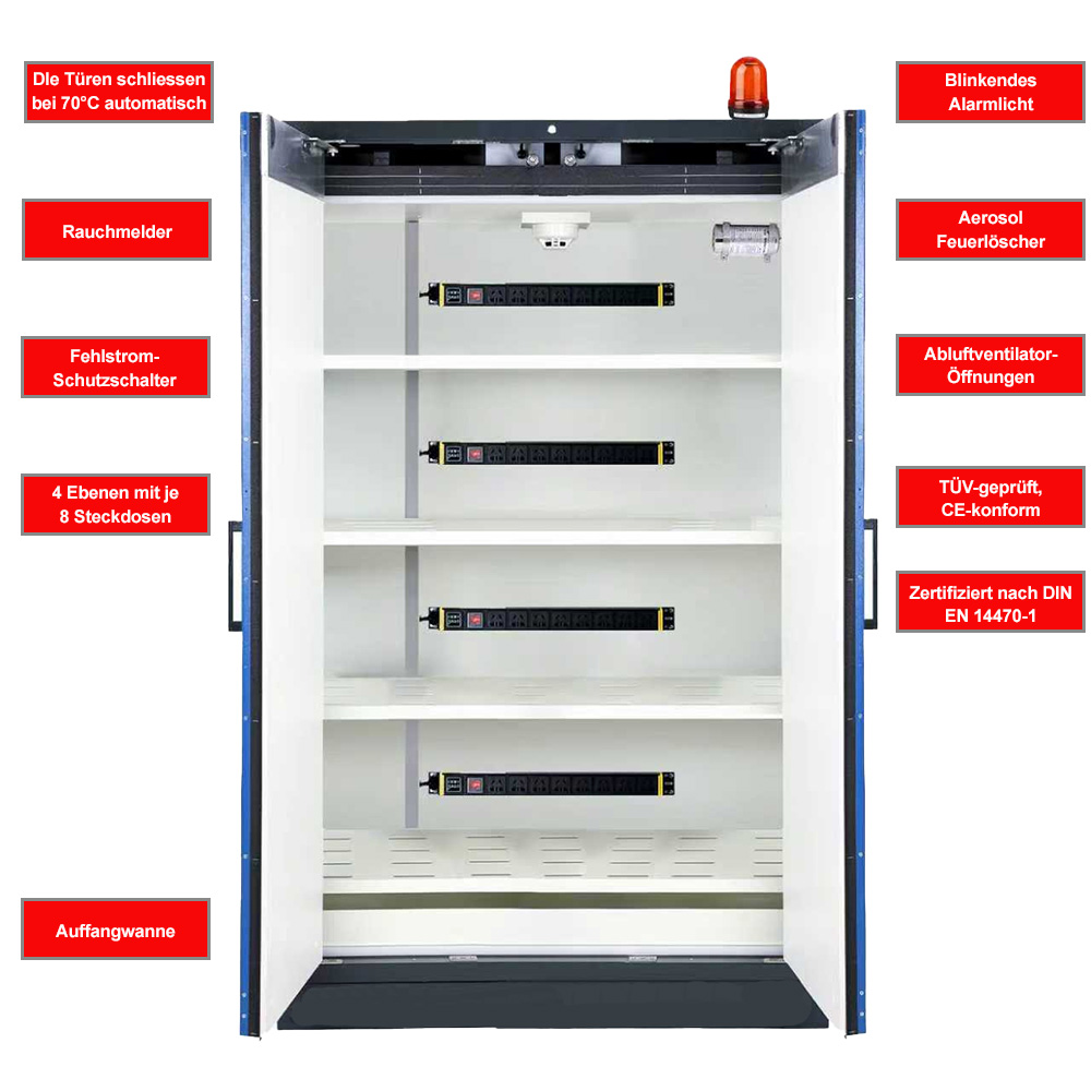 Feuerbeständiger Batterieladeschrank 832 Liter nach Norm EN 14470-1 & EN 1363-1